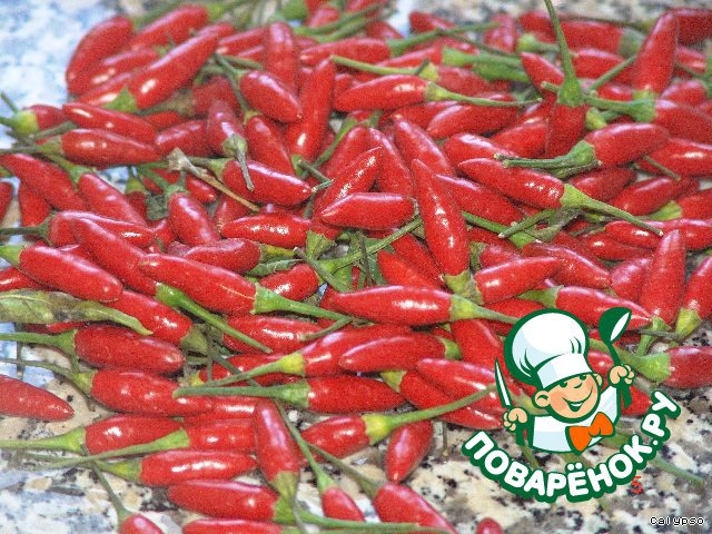 Выбрать небольшую стеклянную ёмкость для приготовления и дальнейшего хранения соуса. Перчики "Чили" или по-португальски "Пири-пири" подбираем в количестве, чтобы заполнить емкость на 1/3.