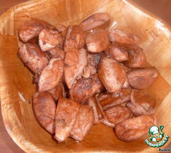 Сильно разогреваем масло в казане и обжариваем сардельки. Будет чем заморить прожорливого червячка, пока готовим.