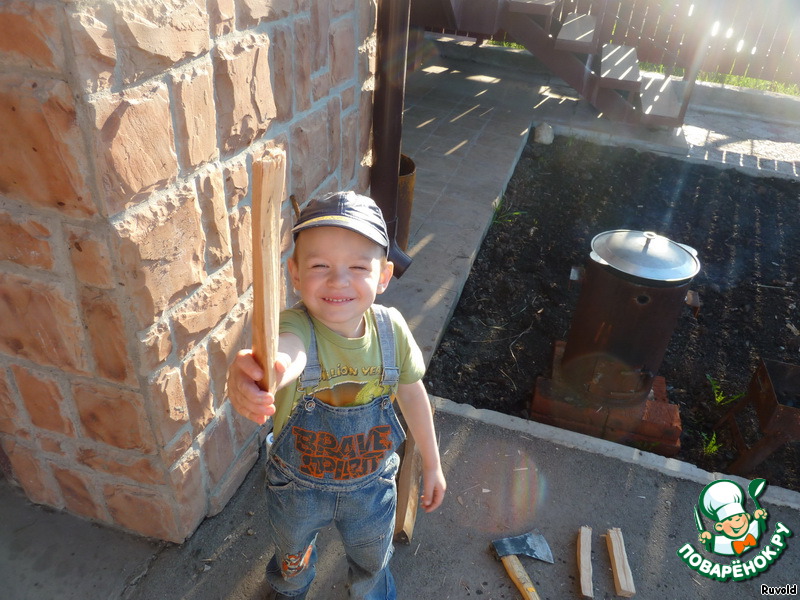 А вот и любимый помощник. Прекрасно помогал жечь дрова и дегустировать ингредиенты во время и после приготовления.