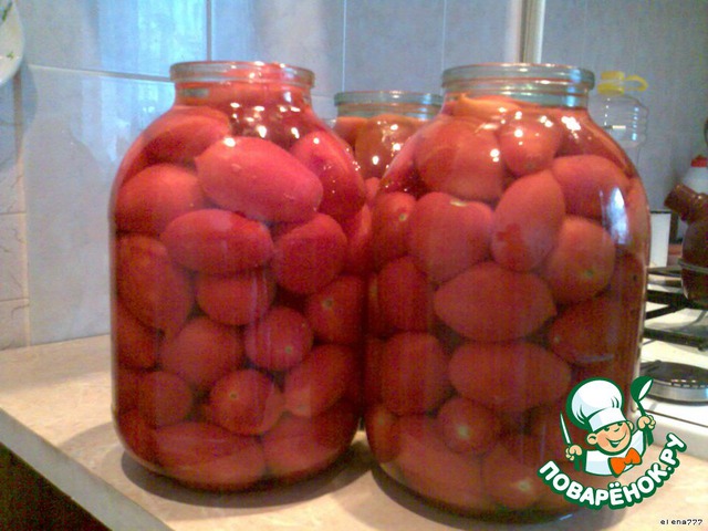 В прошлом году я делала первым способом, в этом году - вторым: в 3 трёхлитровые банки разложить помидоры (сколько войдет),