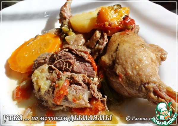 | Утка по мотивам дымлямы. Или дымляма из утки? В общем, назовите, как хотите, расскажу по порядку. Но результат, увы, уже был (!) весьма и весьма, доложу я вам…, быстро и беспощадно съеден. И никто, чесслово, даже не поморщился. … Может быть, просто не успели? |