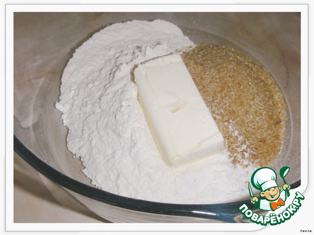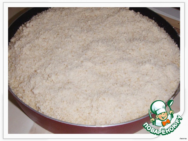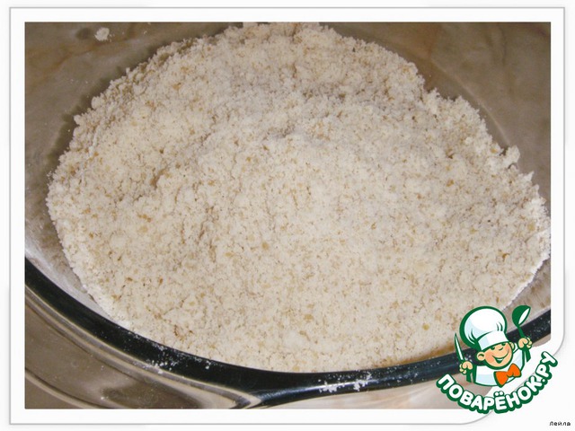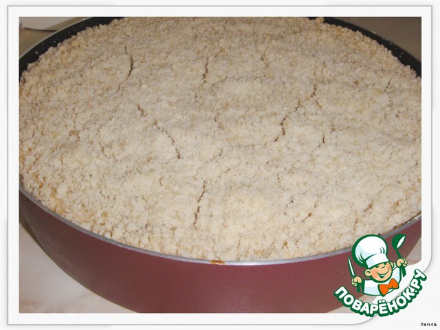 Выложить сверху на творожный слой.Выпекать 35 мин.До золотистости крошек.