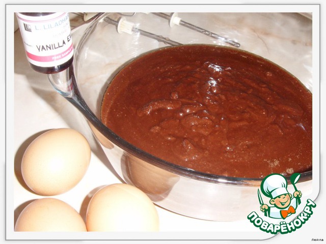 в миску.Добить по-одному яйца,перемешать до однородной массы(взбивать не надо).Добавить ванильный экстракт