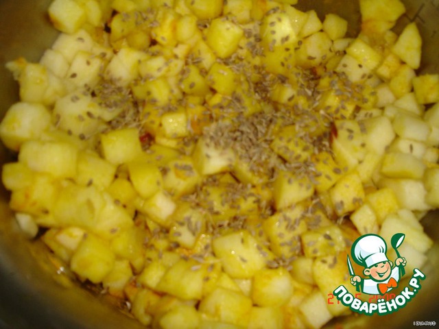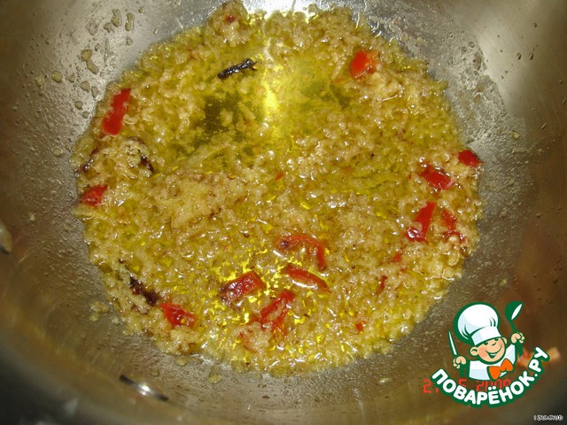 на масле прокалить (в сотейнике)имбирь,корицу,гвоздику,мелко нарезанный перец чили