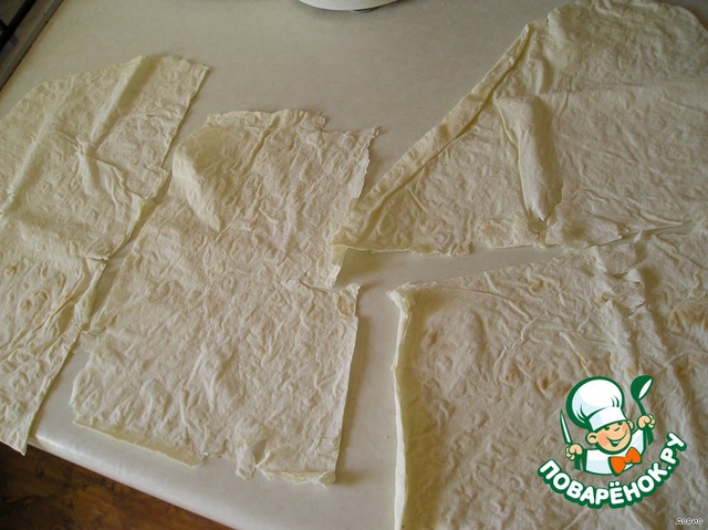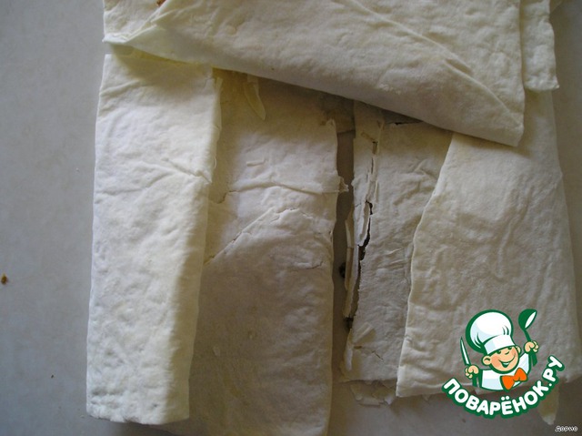 Выкладываем гречку, сыр и курицу на лавашные квадратики.