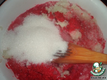Дальше нам нужно эту массу перетереть через сито (что б не было зернышек от смородины и кусочков лука).