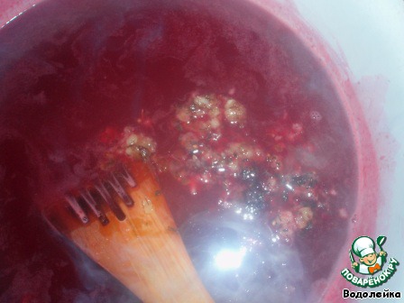 Вот здесь мне пришлось еще раз процедить эту смесь, потому что мне не очень понравилось то, что плавали кусочки чеснока и пряная зелень. Поэтому при следующей варке(летом) я чеснок и зелень положу в марличку или бинтик, а потом просто выброшу.