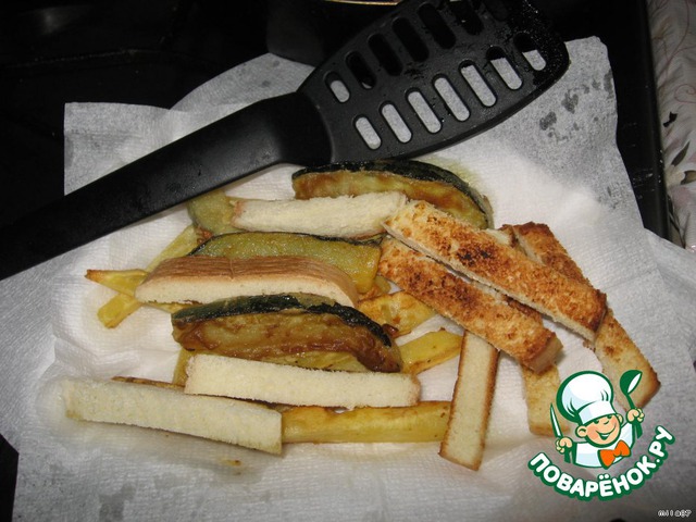 Жаренные овощи остужаем на салфетке, чтобы впиталось лишнее масло.