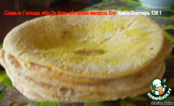 Добавляем к нему щепотку соли, щепотку соды, 4 стакана муки(добавляем последний стакан муки постепенно смотрим по тесту, оно должно получится эластичное и не приставать к рукам) и вымешиваем тесто. Накрываем полотенцем. Даем постоять минут 20. делим на 8-10 частей, смотря какая у вас сковородка. Скатываем шарик и раскатываем тесто.