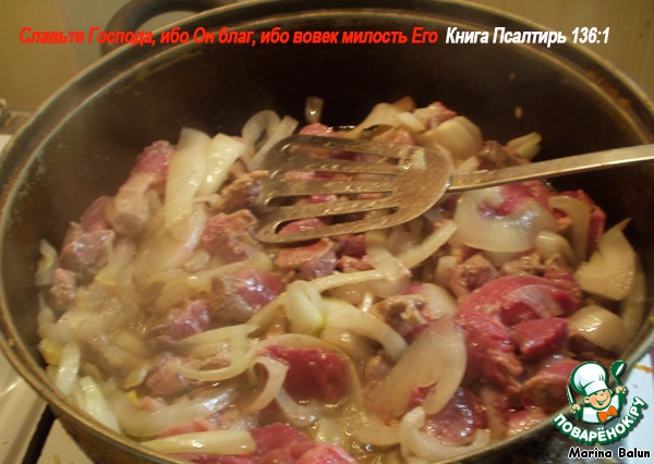 Когда немножко потушится добавляем болгарский перчик, тыкву. Солим перчим. Минут через 10 добавляем томатный соус, солим перчим и еще тушим на медленном огне минут 10.