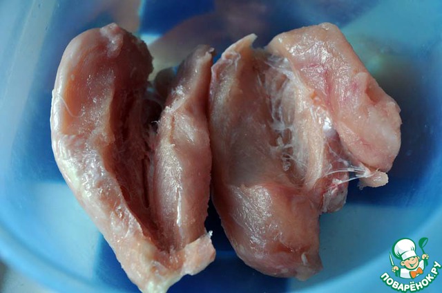 Куриные грудки освобождаем от костей и "разворачиваем".