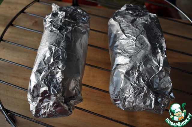 Завернуть фольгу конвертиком и запечь 20 минут на углях или решётке барбекюшницы.
