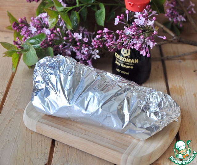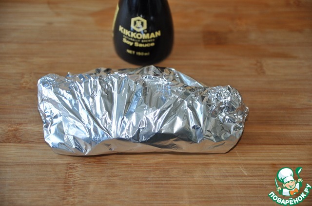 Заворачиваем фольгу. Кладём на угли на 10-15 минут в зависимости от силы жара.
