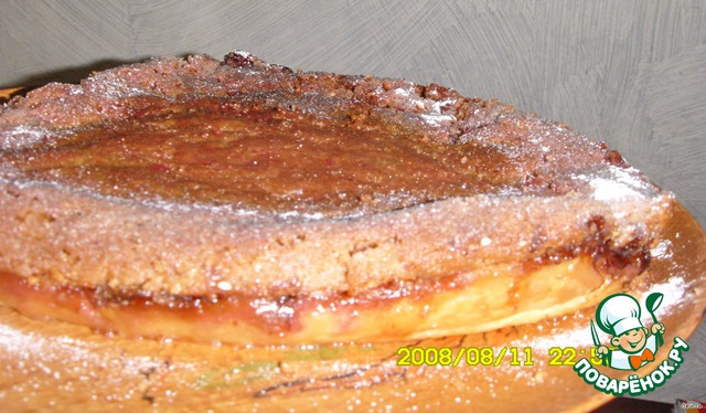После выложила сверху слив миндальную начинку (если тесто и сливы будут по норме рецепта, то просто миндальную начинку разбросать по верху слив). Ставим выпекать в разогретую духовку до t=180 C в течение 40-50 мин. Вынуть, остудить. Сверху посыпала по краям сахарной пудрой и обмазала лимонной глазурью [url]http://www.povarenok.ru/recipes/show/10242/[/url]