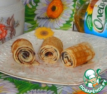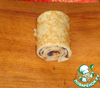 Сворачиваем рулет. Так поступаем с остальными блинами.