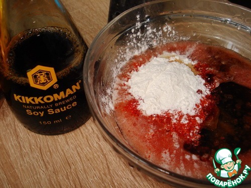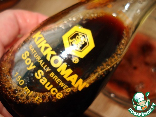 Сколько томатного сока получилось, столько нальем соевого соуса ТМ Kikkoman.
