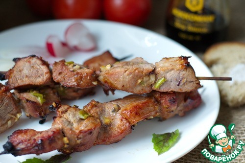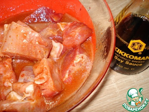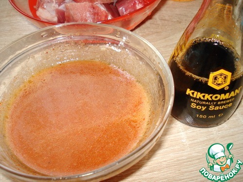 | У нас в семье шашлык жарю я. После того как муж умудрился испортить прекрасную вырезку, терпение мое лопнуло и больше я его только подпускаю к розжигу углей. Шашлык ела разный, самый запоминающийся из козы. С маринадами экспериментирую часто, единственное ни когда не добавляю уксус, мне кажется он убивает мясо. Не слукавлю, если скажу в любой маринад добавляю соевый соус. Сегодня томатно-соевый. |