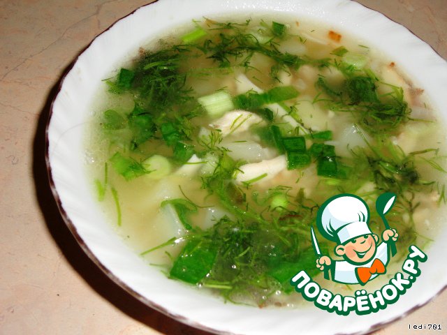 Проварите минут 5 - и все, суп готов. Заправьте суп свежей зеленью.