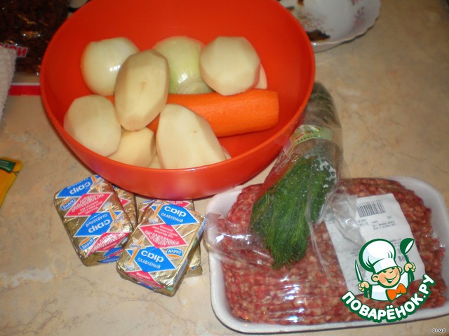 Затем нарезать кубиками сырки и опускать в кипящий супчик. Варить еще минут 10-15.