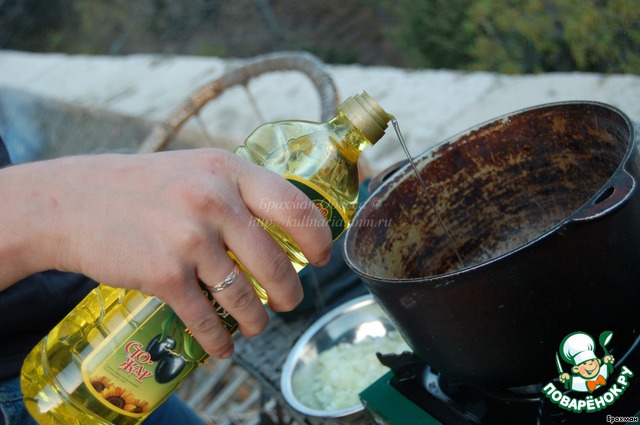 Разогреваем в казанке масло и подогреваем его.