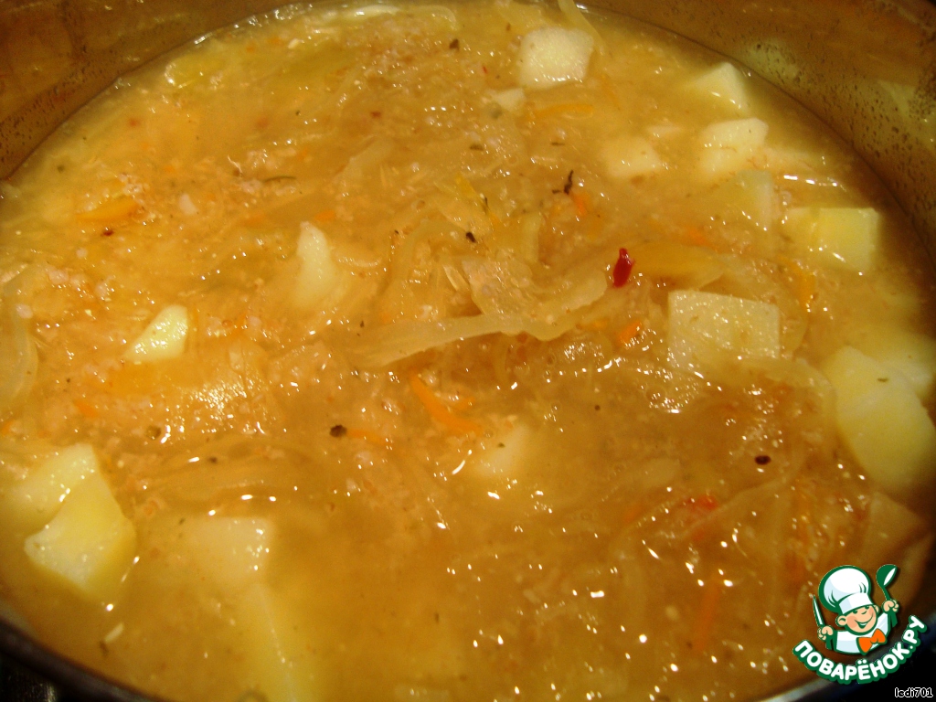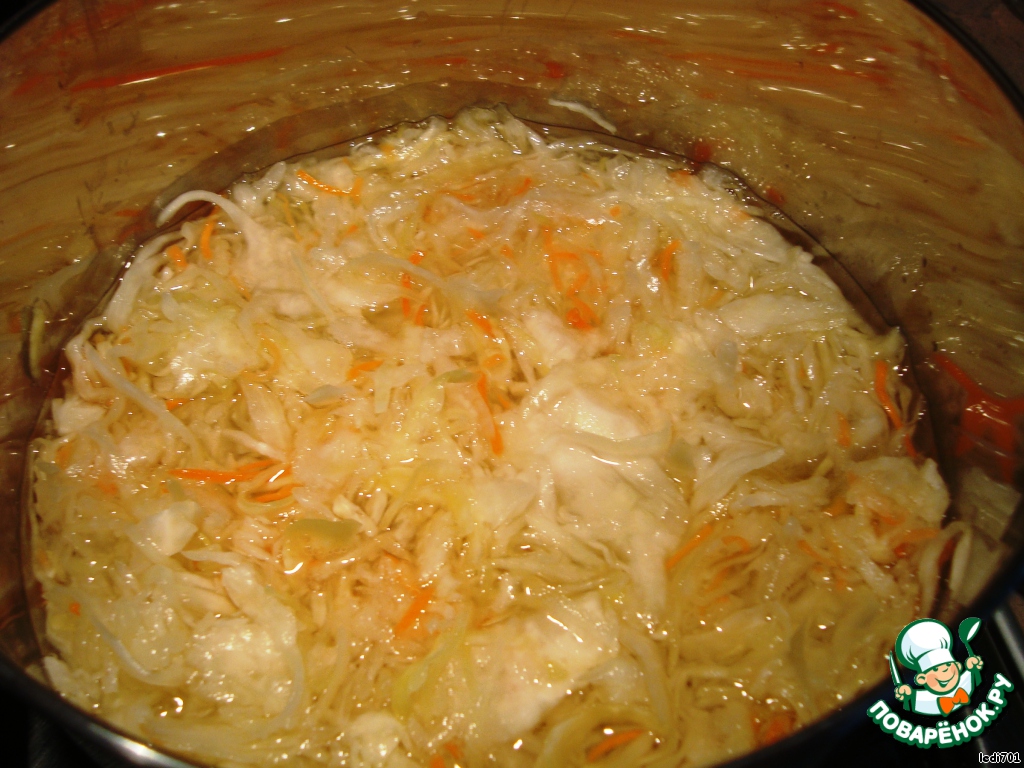 Когда сварится капуста и картофель с крупой, все перемешать вместе.