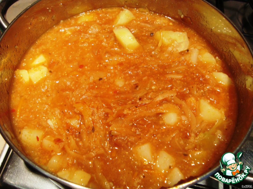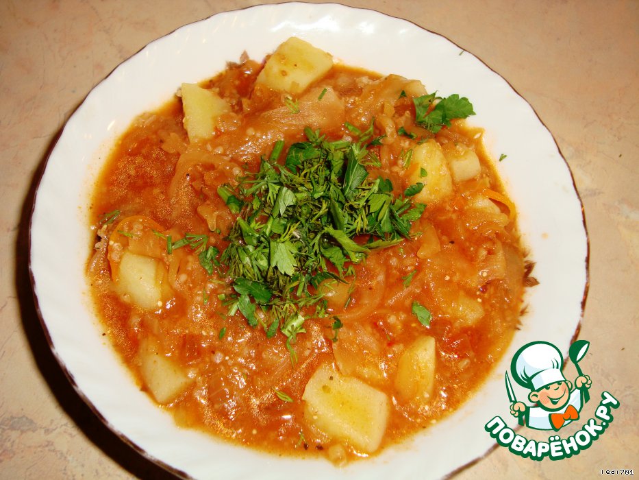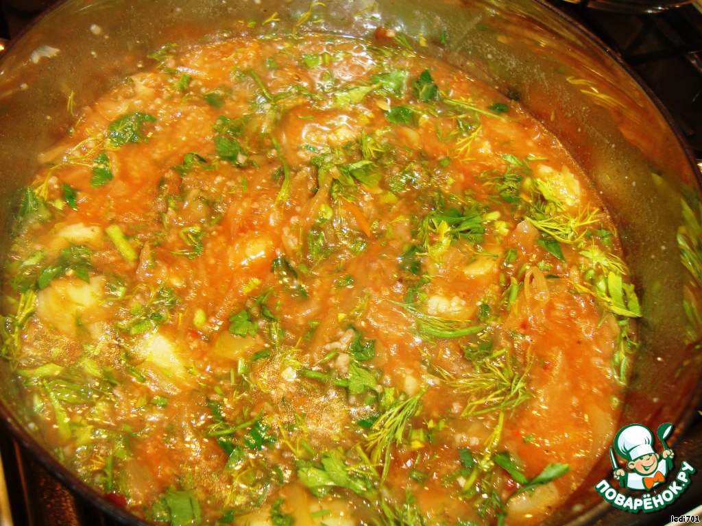 | Это блюдо Армянской кухни. Рецепт попался на просторах инета. Решила испробовать. Получился суп (густой консистенции) кисло-острого вкуса. |