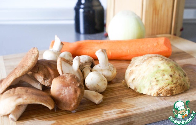 *Поскольку я готовила бульон для блюд с китайским характером, я использую смесь шампиньонов и шиитаке, но просто с шампиньонами - тоже работает, как и вовсе без них.