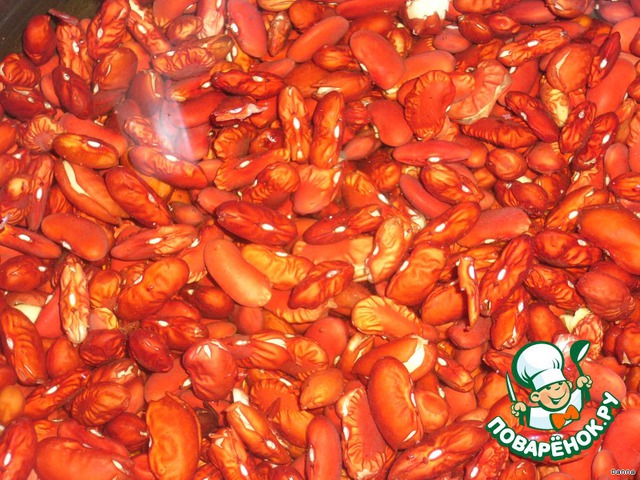 Когда в кастрюле появятся первые пузырьки закипания, добавить туда зажарку, посолить, поперчить, положить лавровый листик, готовую фасоль, хорошенько перемешать и дать ещё потомиться 5-10 минут под закрытой крышкой.
