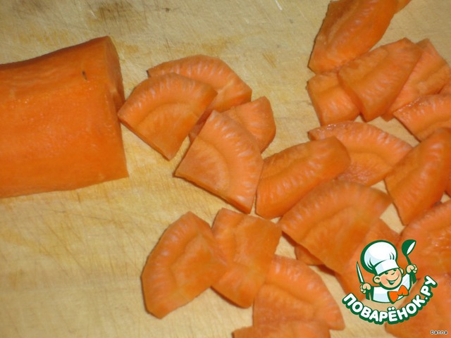Морковку очистить, порезать тонкими полукольцами и выложить в бульон к мясу.