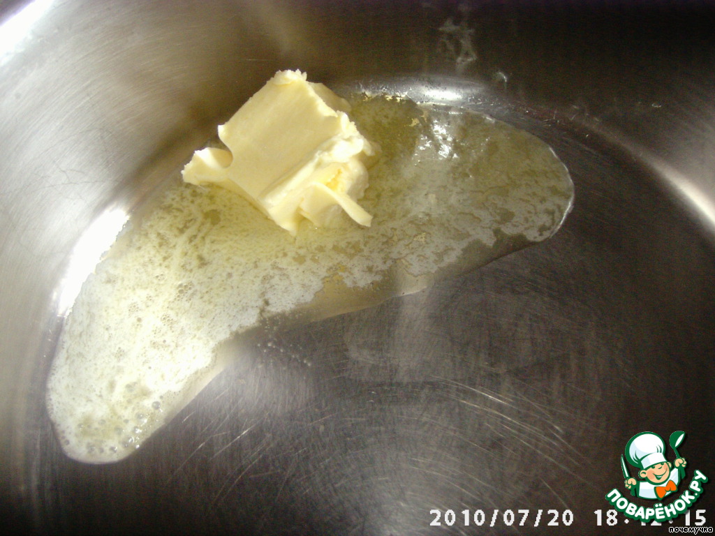 Креветки отварить в кипящей воде и очистить. Сливочное масло распустить в горячей кастрюле,
