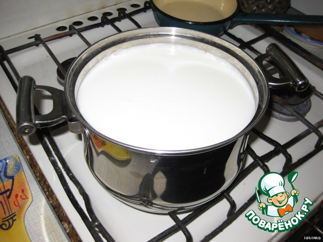 Кефир и газированную воду выливаем в кастрюлю или другую ёмкость.