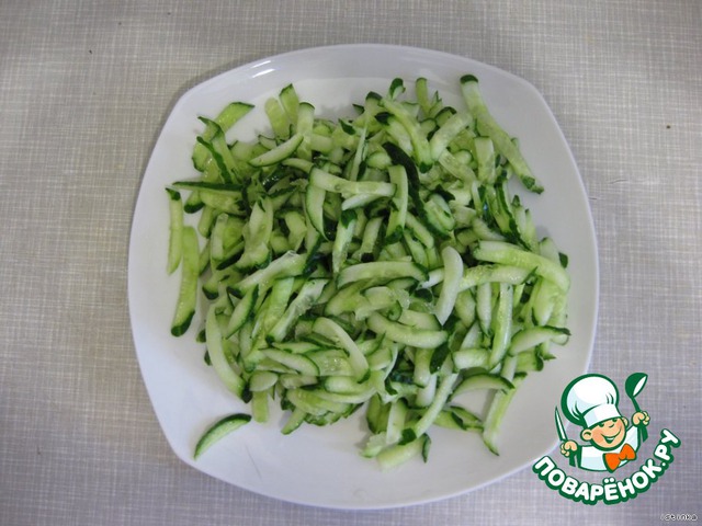В качестве "славянской изюминки" по просьбе супруга я добавила в сегодняшний Тараторчик 200 г порезанной кубиками копчёной куриной грудки. Тут возможны разные импровизации - крабовые палочки, колбаска и т.д.