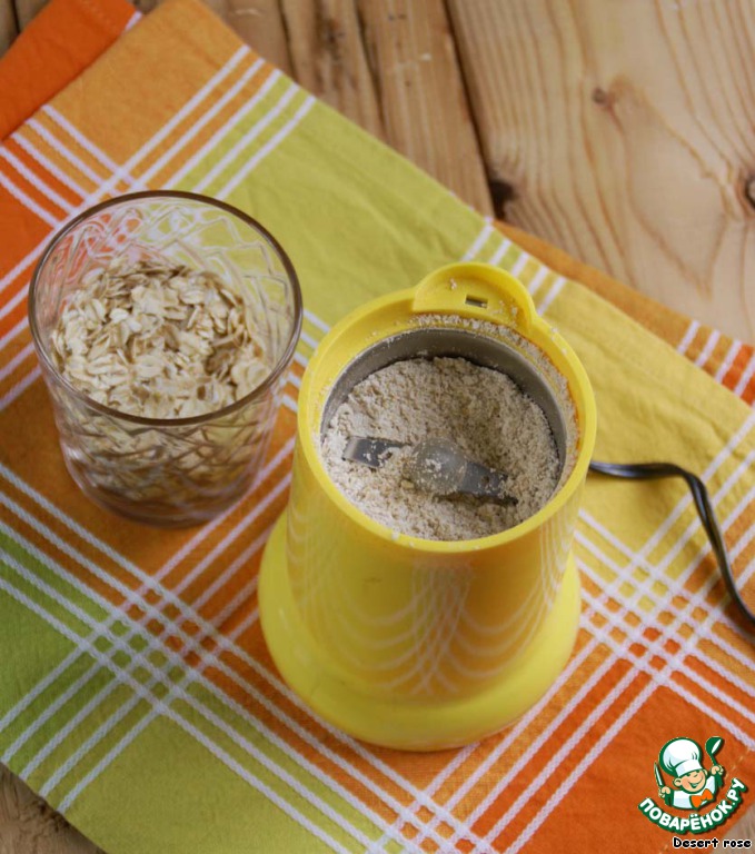 Для этого овсяные хлопья (Геркулес) размолоть в кофемолке или истолочь в ступке.