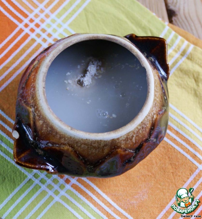 Залить измельченные хлопья теплой кипяченой водой и оставить для скисания в теплом месте как минимум на сутки. Лучше делать это в керамической посуде, в крайнем случае, в эмалированной.