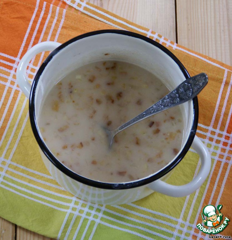 В процеженный овсяный раствор добавить жареный лук, маленькую щепотку растертого тмина и вскипятить.