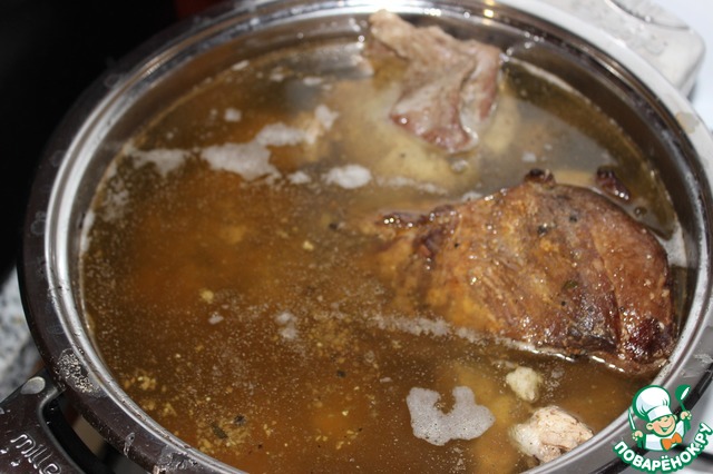 Время приготовления бульона не учитывала. Мясо из бульона можете разобрать и положить назад в суп, можете использовать для приготовления вторых блюд. В кипящий бульон кладем наши копчености.