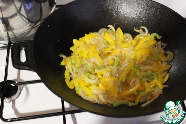 Выливаем содержимое сковороды в кастрюлю с супом. Я вливаю оливки (по рецепту, кукурузу) вместе с рассолом, добавляем специи, солим. Варим все 10 минут после закипания.