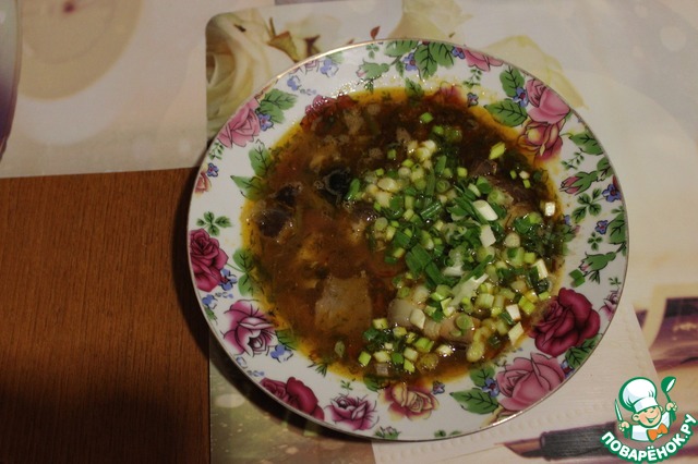 Мелко нарезаем зеленый лук, щедро насыпаем его в каждую тарелочку. Приятного аппетита.