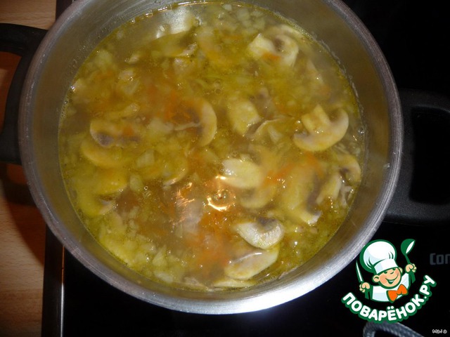 Когда суп почти готов, добавляем тертый сыр и перемешиваем, после оставляем еще на три минуты на огне и выключаем. Суп готов!