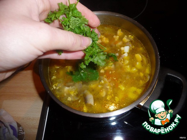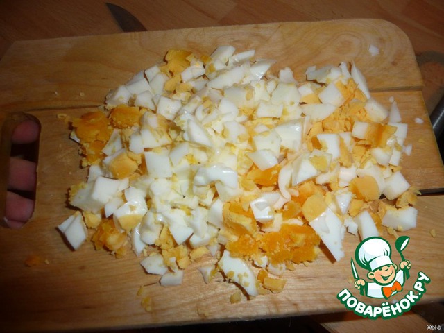 Сваренные вкрутую яйца измельчаем и тоже в суп.