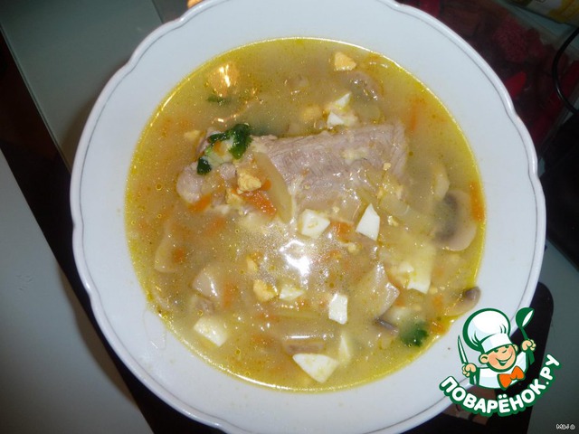 | Рецепт этого золотистого, веселого супчика я прочитала в каком-то журнале. Вскоре вышла замуж, и муж, как оказалось, очень любит супы, а я как назло никогда их не готовила. Пришлось начинать.. Это был мой второй супчик, очень уж вкусный получился, не могу не поделиться! |