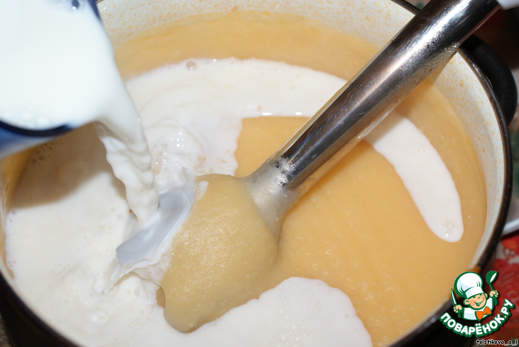 Вареные овощи измельчить в блендере вместе с отваром, добавить горячее молоко, сливочное масло и соль по вкусу.