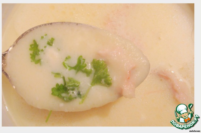 Добавить, по желанию, кусочки курицы (как у меня), семгу, креветки... Украсить свежей травкой. Подавать с сухариками.
