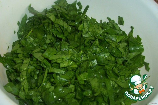Шпинат разморозить, порезать и побрызггать соком лимона, оставить для пропитки.