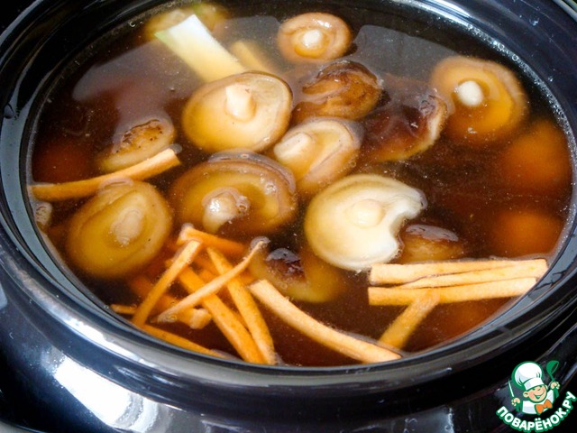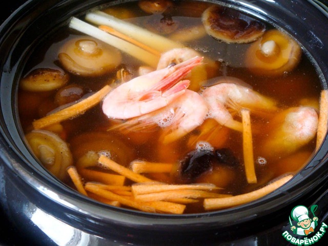 *Если у вас имеется паста мисо - растворите ее предварительно в бульоне - получится именно то, что нужно. Если мисо нет, то можно обойтись соевым соусом.
