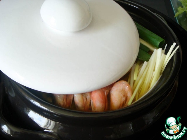 Через пару минут креветки.