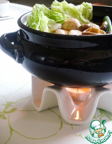 Идеально- если у вас имеется газовая горелка или плитка. В этом случае весь процесс приготовления можно организовать прямо за обеденным столом. Если же блюдо все-таки готовится на плите, то можно воспользоваться, например, подставкой от фондю и на ней перенести котелок на стол.