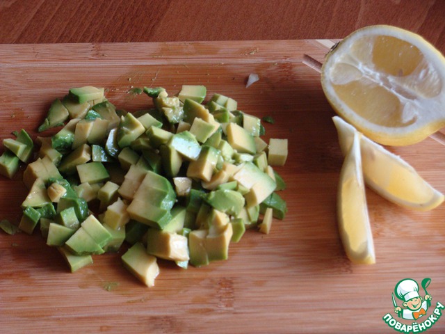 В это время нарезаем авокадо, поливаем его соком лимона, чтобы не потемнел.