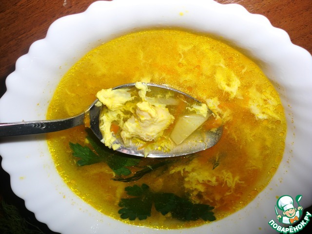 3. В готовый суп вливаете яйца, даете супу закипеть. Все, готово!)