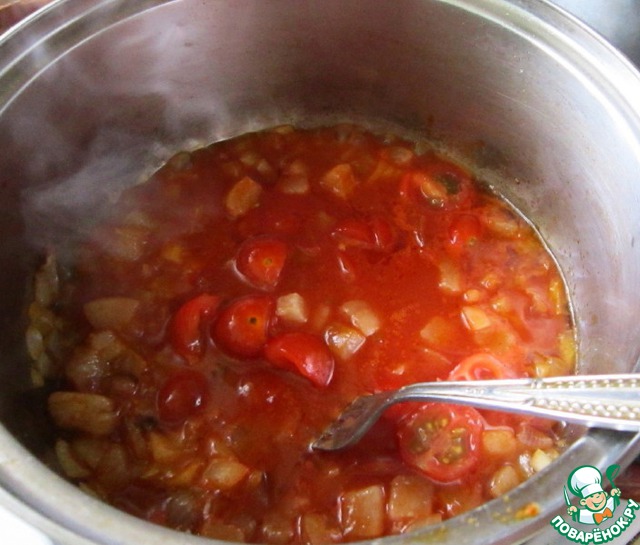 Помидоры очистить (я этого делать не стала), нарезать крупно и добавить в суп.